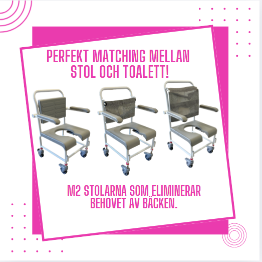 Då vill vi påminna om våra M2 dusch-/toalettstolar, som är särskilt utvecklade för detta – för att säkerställa bästa möjliga passform mellan stol och toalett.
